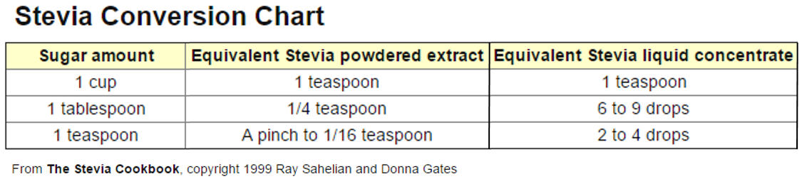 Below is a chart for other Stevia conversions, both for powder and liquid.
