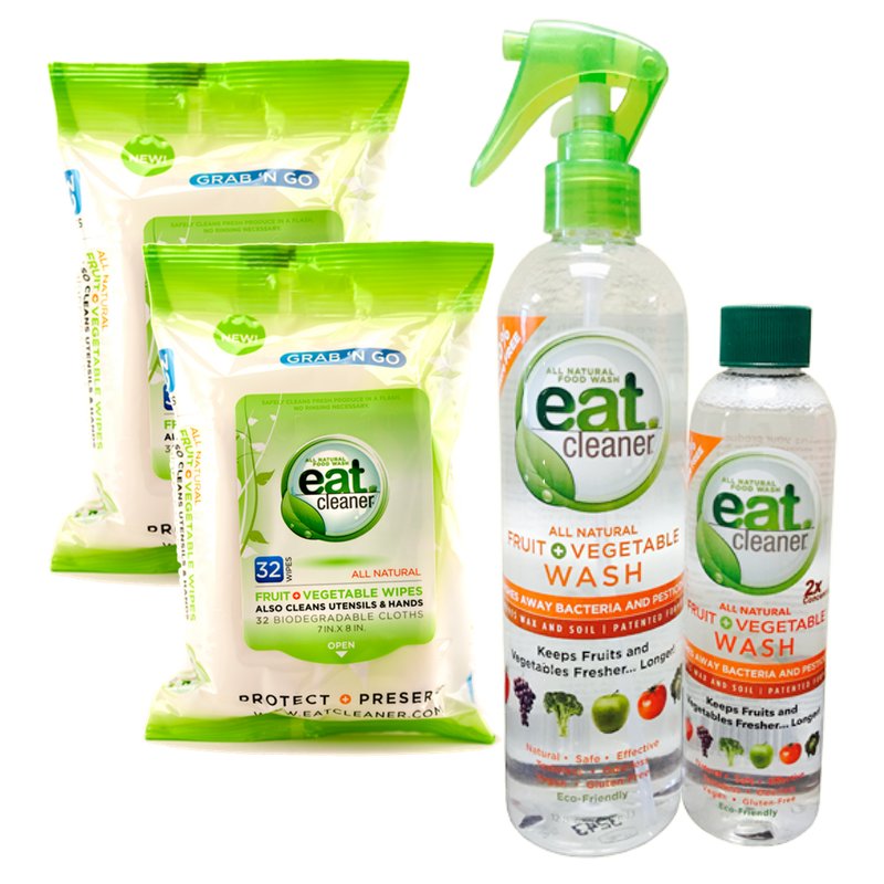 I personally use the Eat Cleaner spray, keep a refill on hand, and use the wipes for on-the-go with things like apples, pears, cherry tomatoes. They're perfect as a sanitize wipe for wiping clean your kids' hands, face or even a binkie!