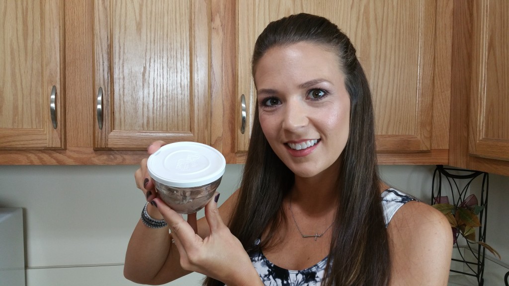 - Put a scoop of chocolate protein powder in a small bowl & pour in about 1/4c of coconut milk. Depending which type of protein powder you use and the thickness of the milk, you may need to add a little more or less than the ¼ cup. I never measure, I just add it as I go.